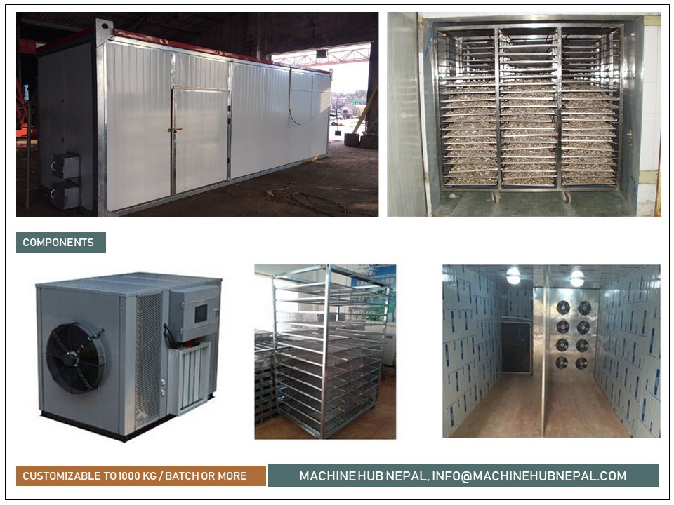 This machine is suitable for drying multiple products within wide range of temperature. For detail inquiries about the capabilities about the machine please give us a mail at: info@machinehubnepal.com.
